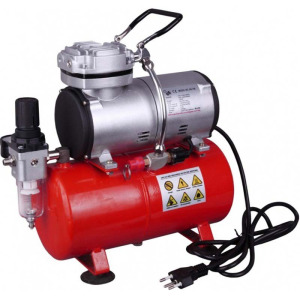 Para o seu funcionamento é necessário um compressor de ar, que também encontramos diversos modelos no mercado, eu utilizo um de fabricação caseira que eu mesmo fiz usando um motor de geladeira. Sugiro que se forem fazer o mesmo pesquisem bem para não correr riscos de acidentes, pois lidamos com eletricidade.